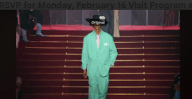 The first model of the show emerged with a bright, minty green suit and bubble-gum pink tie. He wore an angled black top hat with a large white flower on the side, and big-framed sunglasses covered his face. The effect was almost comical and varied greatly from Chavarria’s previous shows, which featured mostly red and black.